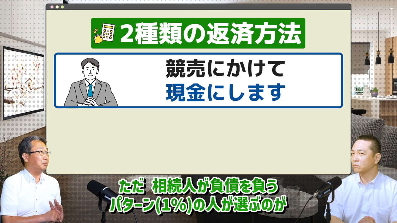 相続人任せ(ごく少数):任意売却を選べますが、買い手が見つからない間も金利が発生し、金利設定も高めです。