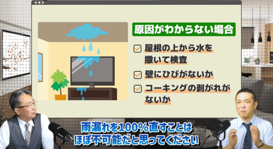 雨漏りを100%完全に直すことは難しいケースもあります。